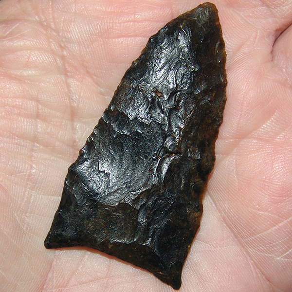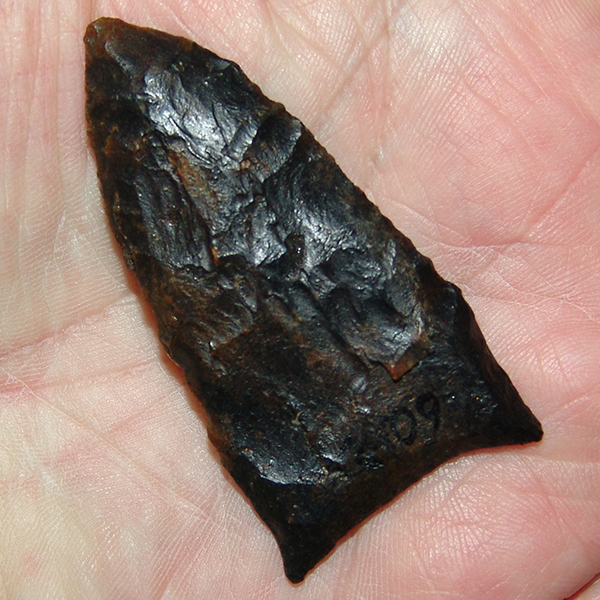Found decades ago by Ben Waller and still faintly bears his catalog number, super well preserved and in made by an ancient craftsman. Excellent polish and heavy basal grinding and displays equally well on either face.