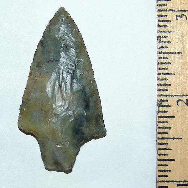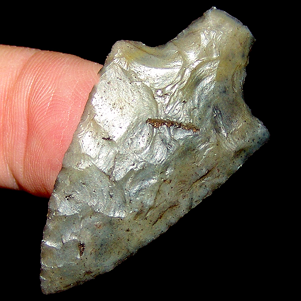 G10 Weeden Island made of high grade translucent agatized coral with nice blue, gray, and yellow colors. Top shelf example made of gem like material.