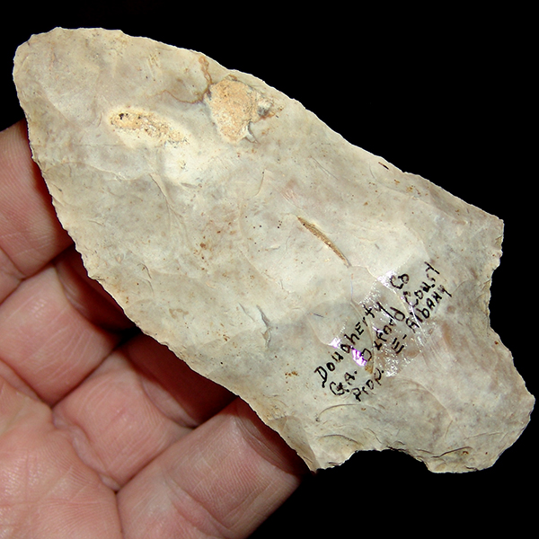Classic Flint River point type with nice size, creamy patina , and nice pedigree Ex Beutell