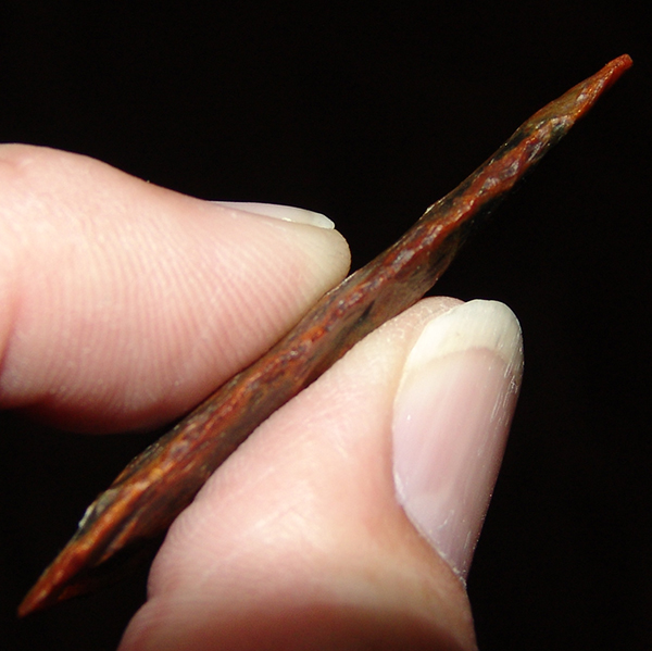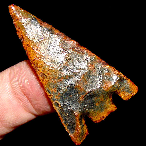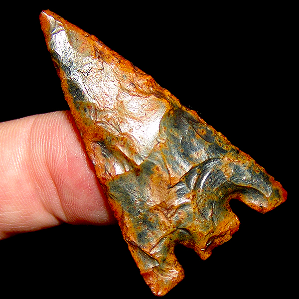 This one comes from my personal Hernando collection. Stamped out, thin, extraordinary color and polish, with nice translucence. Displays equally well on either face. has some ancient tip wear but was still nice enough to make one of my top Hernando cases. Hernandos this nice dont come available very often.