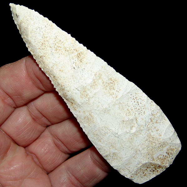 Flawless perfection in this outstanding Cobbs with creamy white patina and tiny serrations along the beveled edge. One of the best you will ever see in pristine condition and made by an ancient master - Centerpiece for sure.