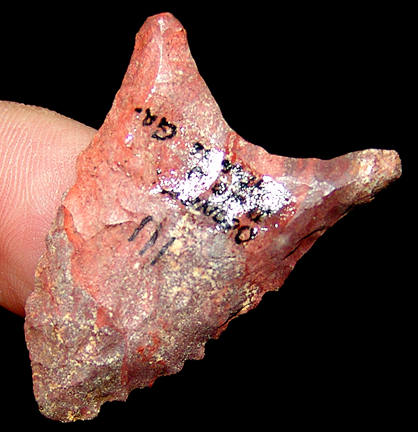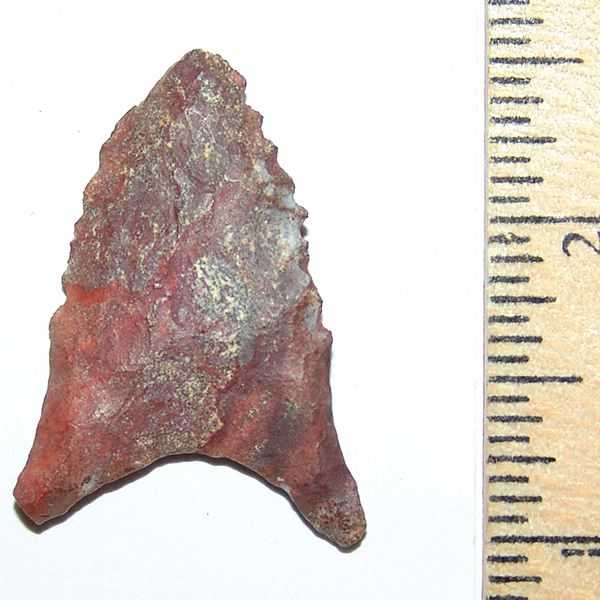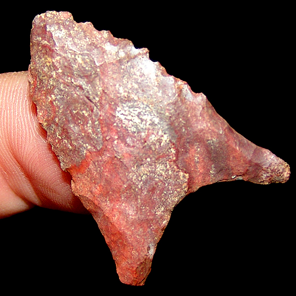 Colorful and rare Dalton Ocmulgee, with nice basal incurvation , long ears, nice basal grinding, and serrations and great color. Oconee Ga area, Ex Beutell