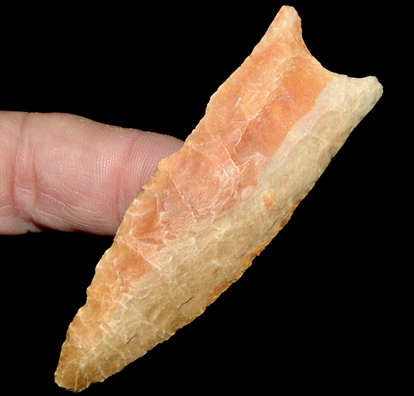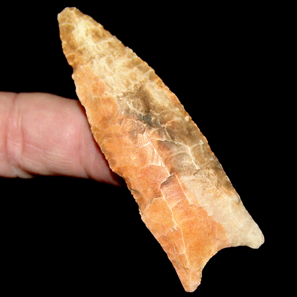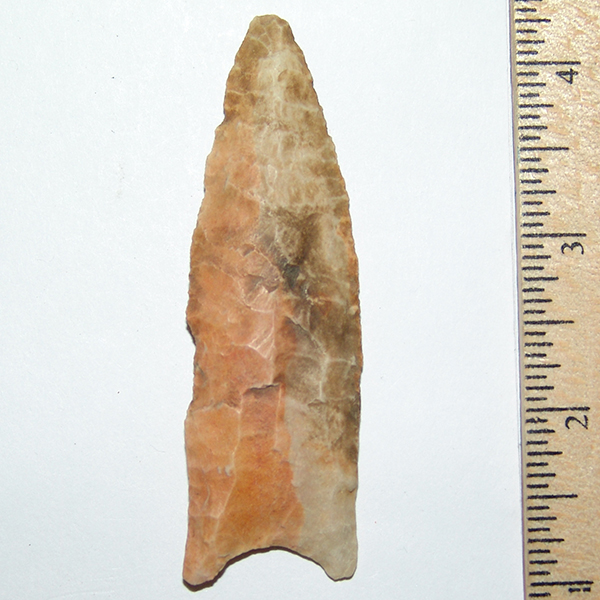 Nice color and creek staining on this classic multi fluted Redstone well over 3 inches long. One of the rarest and hard to find or acquire types in the Deep South with super basal grinding.