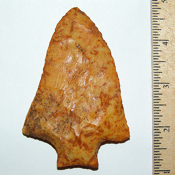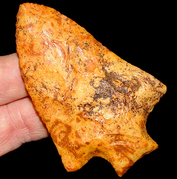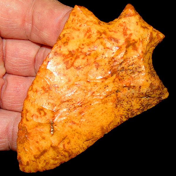 One of the prettiest coral Wacissa points I have ever seen with outstanding color, polish, and visible polyps and in excellent condition. From my personal collection.